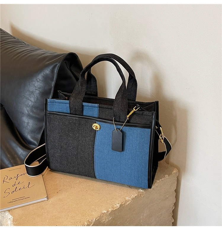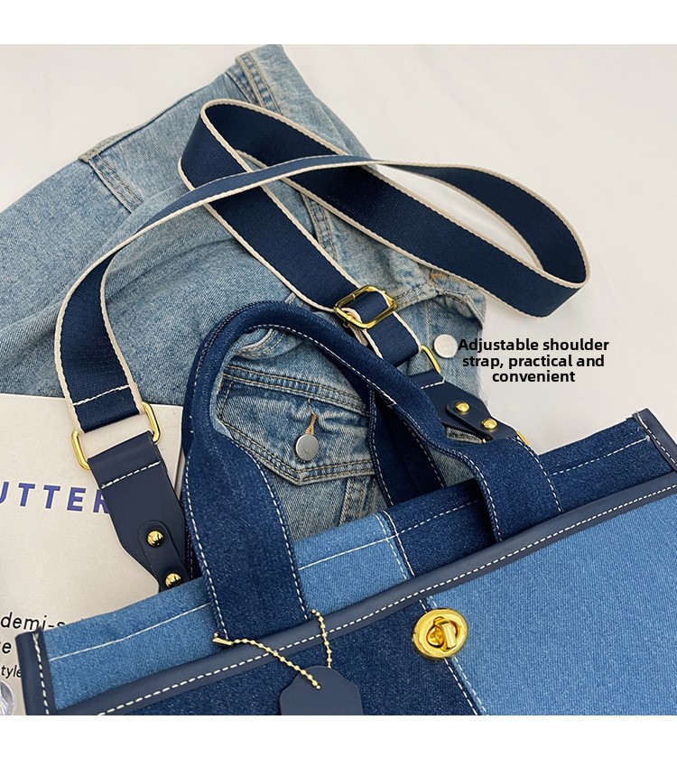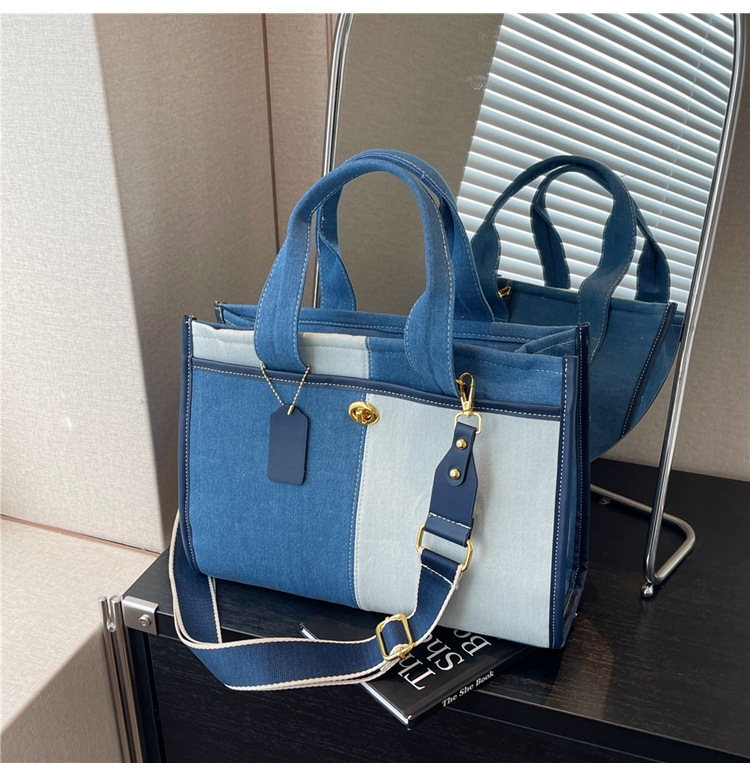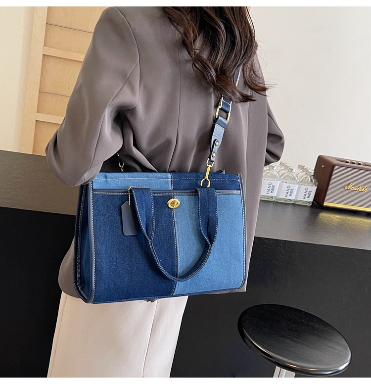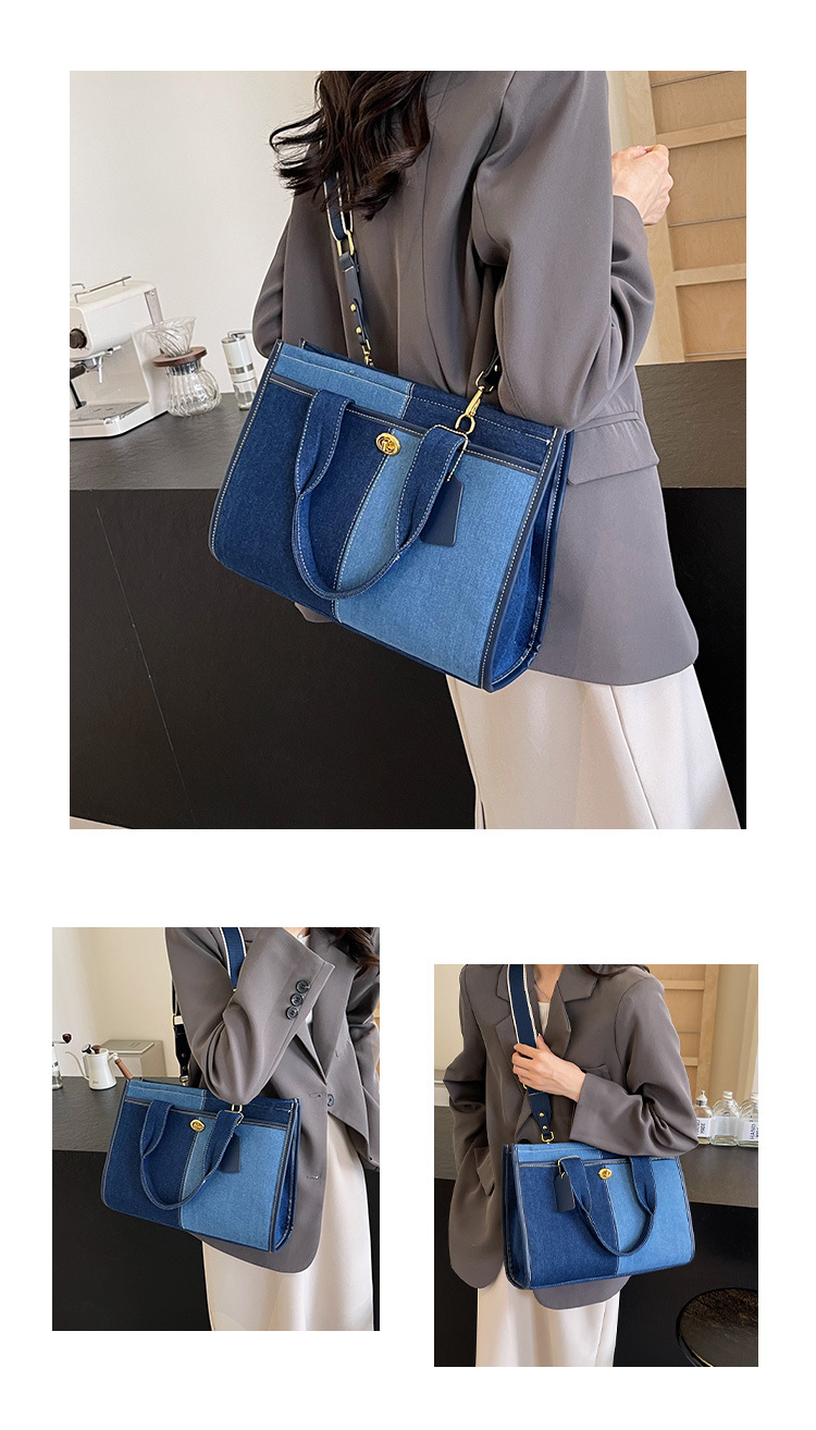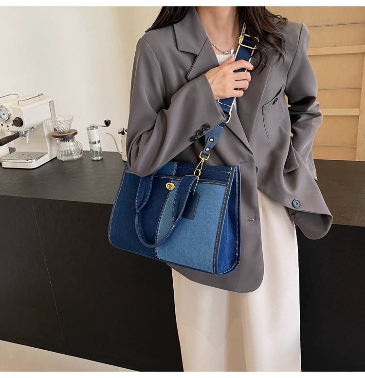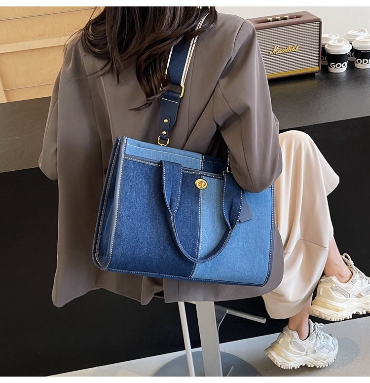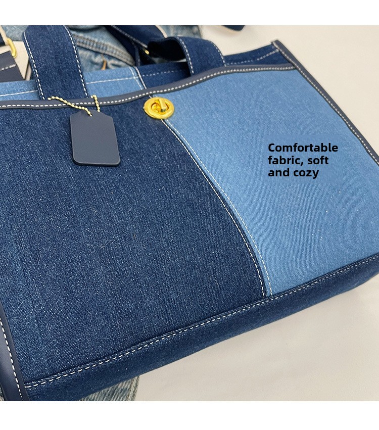 Denim Patchwork Shoulder Tote Bag