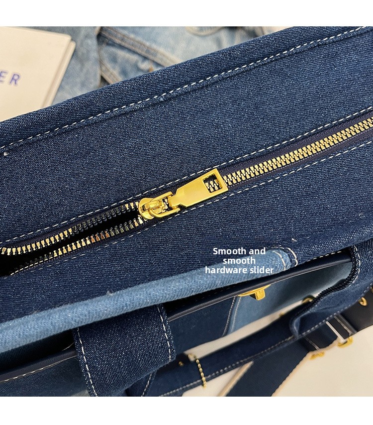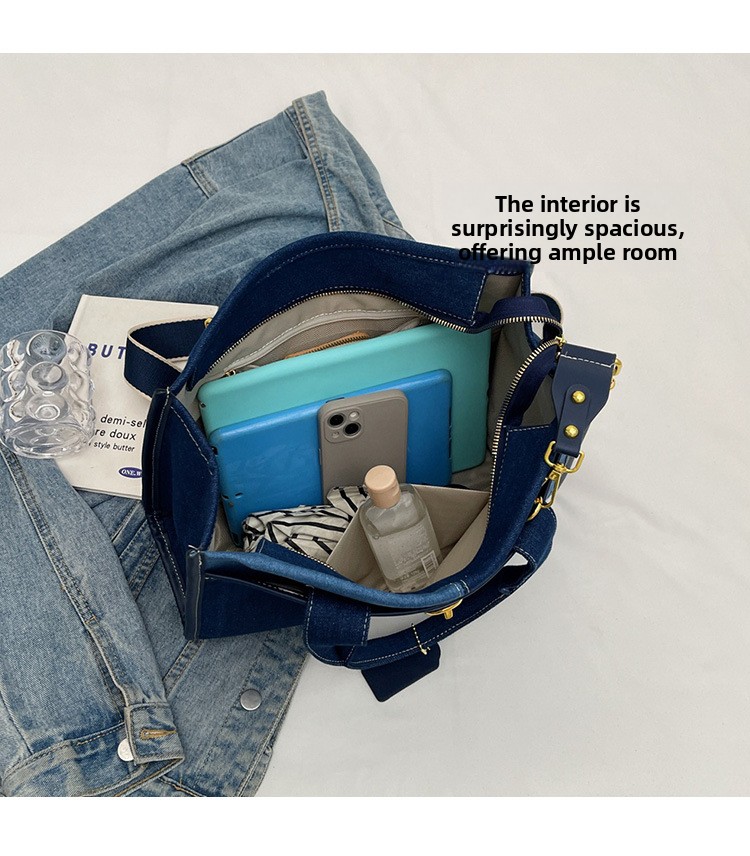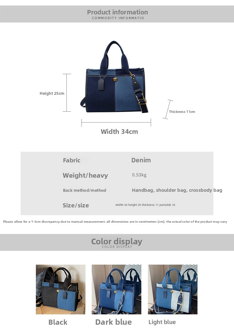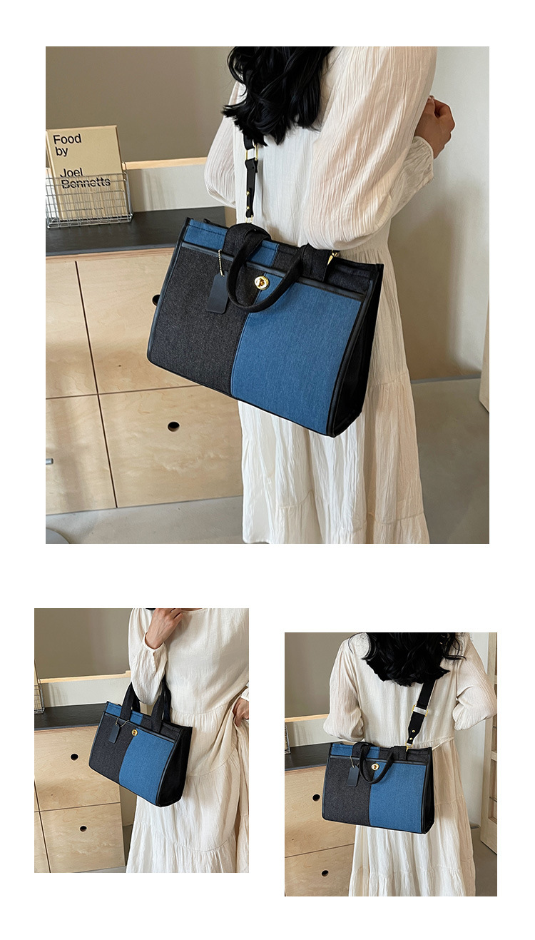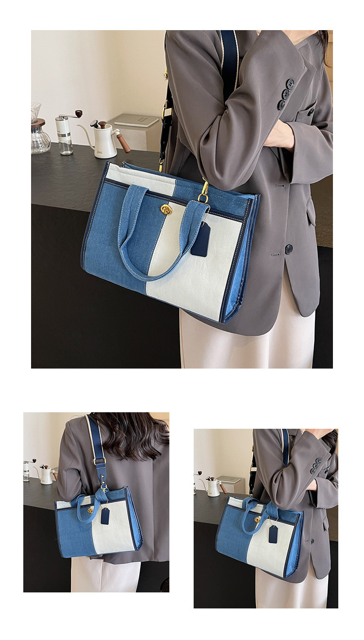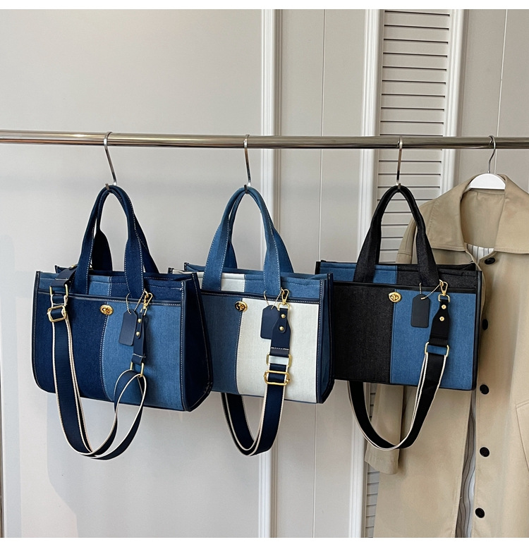 Denim Patchwork Shoulder Tote Bag